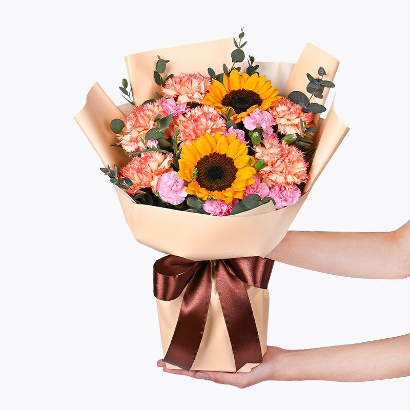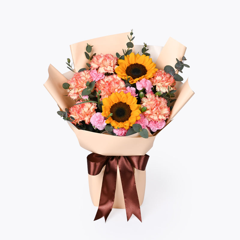 For a love that knows no bounds - our Beaming Love flower bouquet, brimming with bright carnations and sunflowers, as wonderful as that special someone! Put a smile on their face with the perfect gift, made to celebrate all that they are!