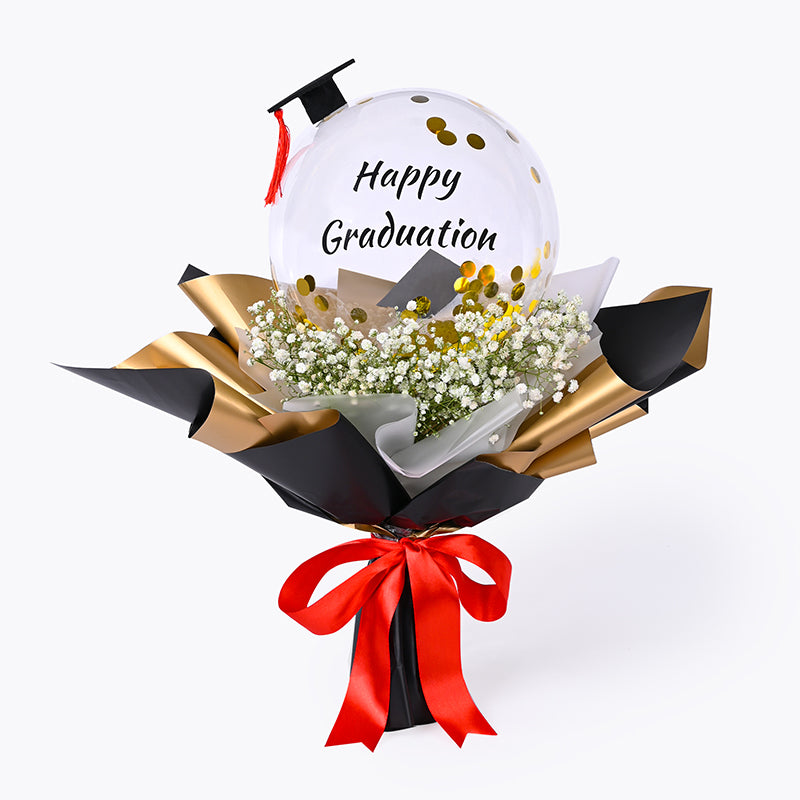 Wish them all the luck and glory on their graduation day, with the perfect flower bouquet! A golden confetti-filled graduation balloon, decked upon flourishes of baby's breath flowers is sure to keep the limelight on them, on that incredibly special day.
