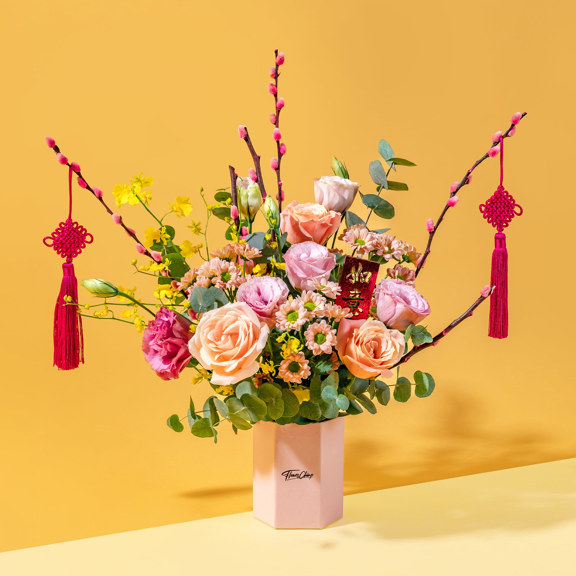 Transform your Chinese New Year celebration with Lucky Glow, a stunning arrangement that radiates warmth like the first light of dawn. This vibrant CNY gift symbolizes love, joy, and prosperity through beautifully curated seasonal blooms that bring festive energy to every space. Perfect for celebrating new beginnings and welcoming luck, happiness, and abundance into the year ahead.