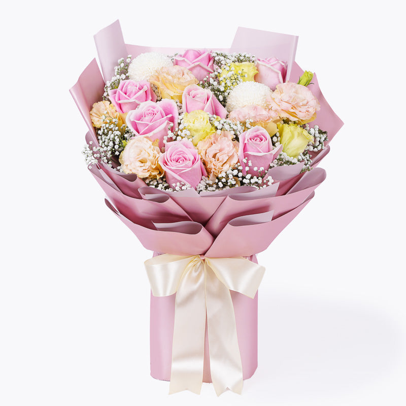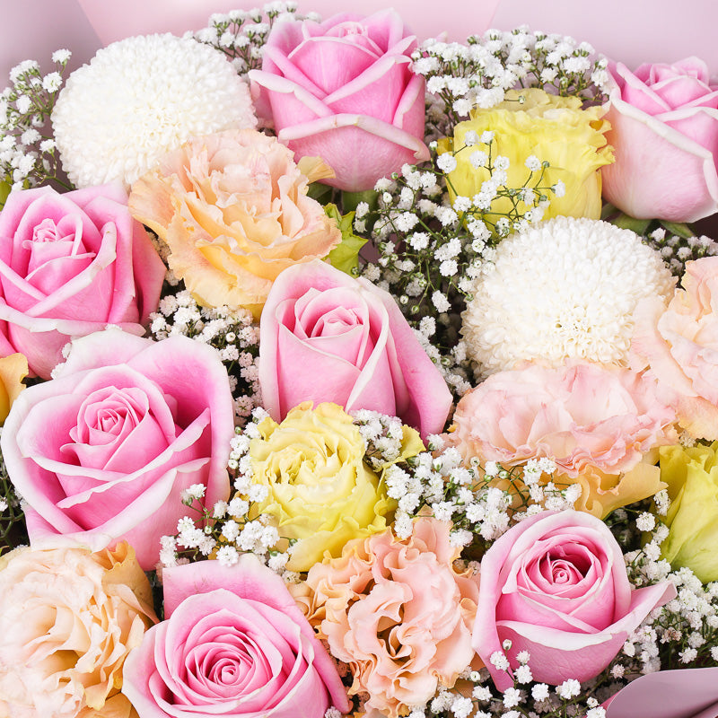 Mothers have the cure for everything - they know exactly how to put a bright smile on our faces, on any given day. This Mother's Day, send her the perfect gift to make her just as happy with our Bubbly flower bouquet. Bursting with sprays of pastel roses, eustomas, ping pongs and baby's breath - this arrangement perfectly encapsulates a mother's bubbly and bright spirit.
