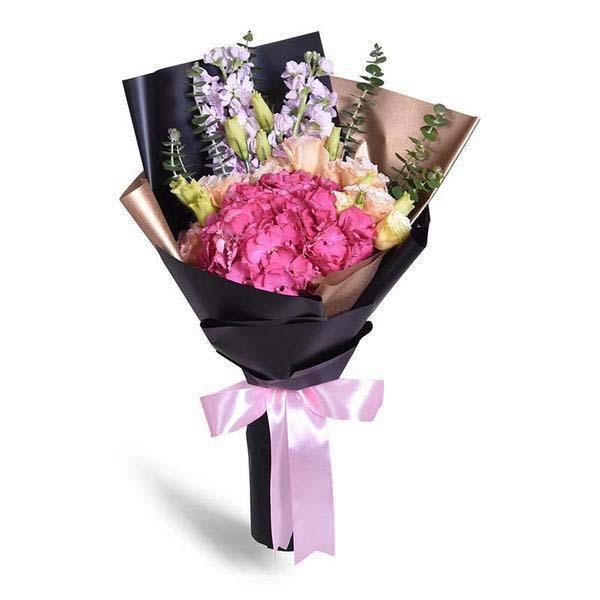 Beautiful sweet blooms of Hydrangeas and Eustomas. Hand wrapped to perfection. Perfect for all occasions.