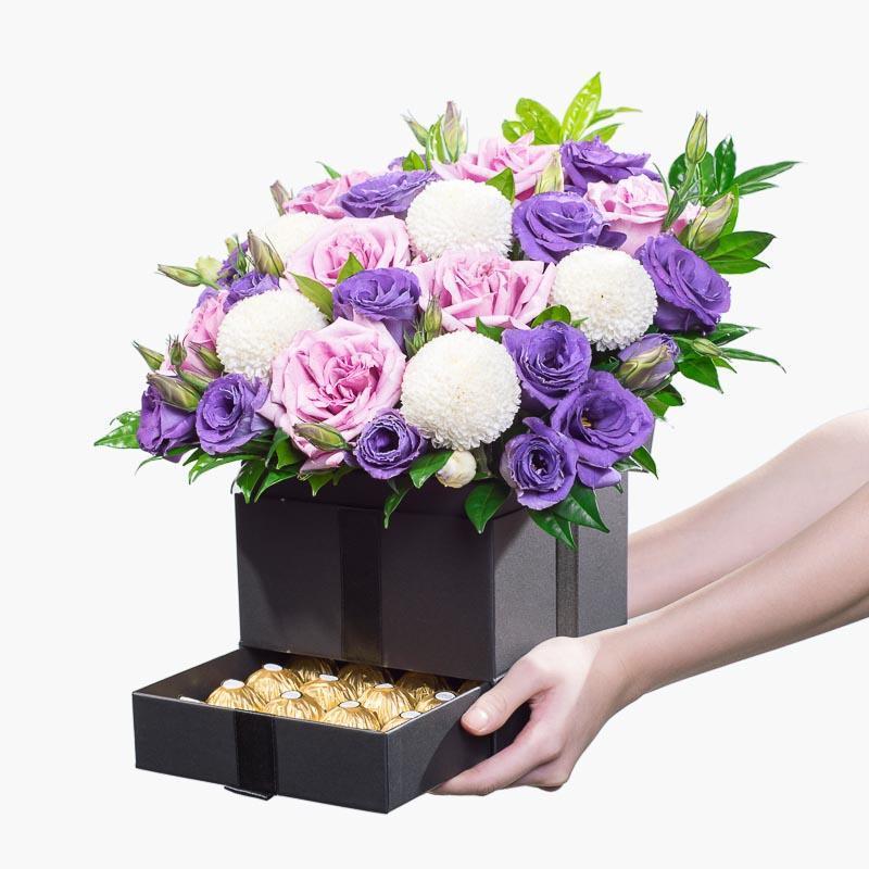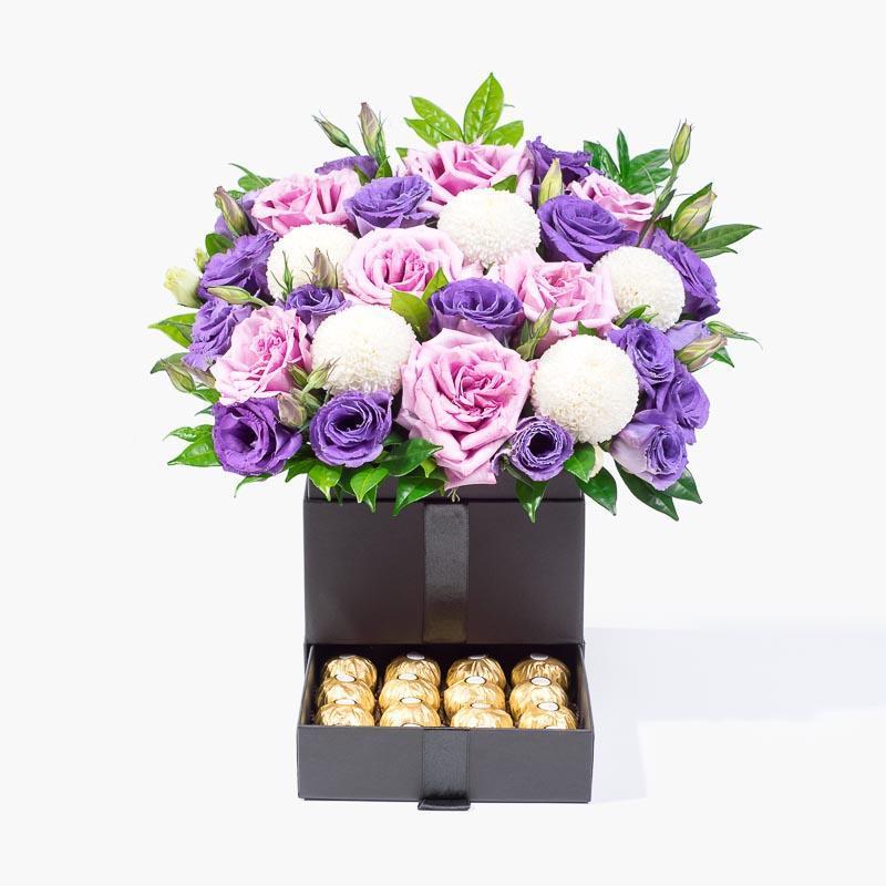 I loved the design of this arrangement with the secret chocolate drawer. The service was outstanding, efficient and the selection choice was lovely. Thank you.